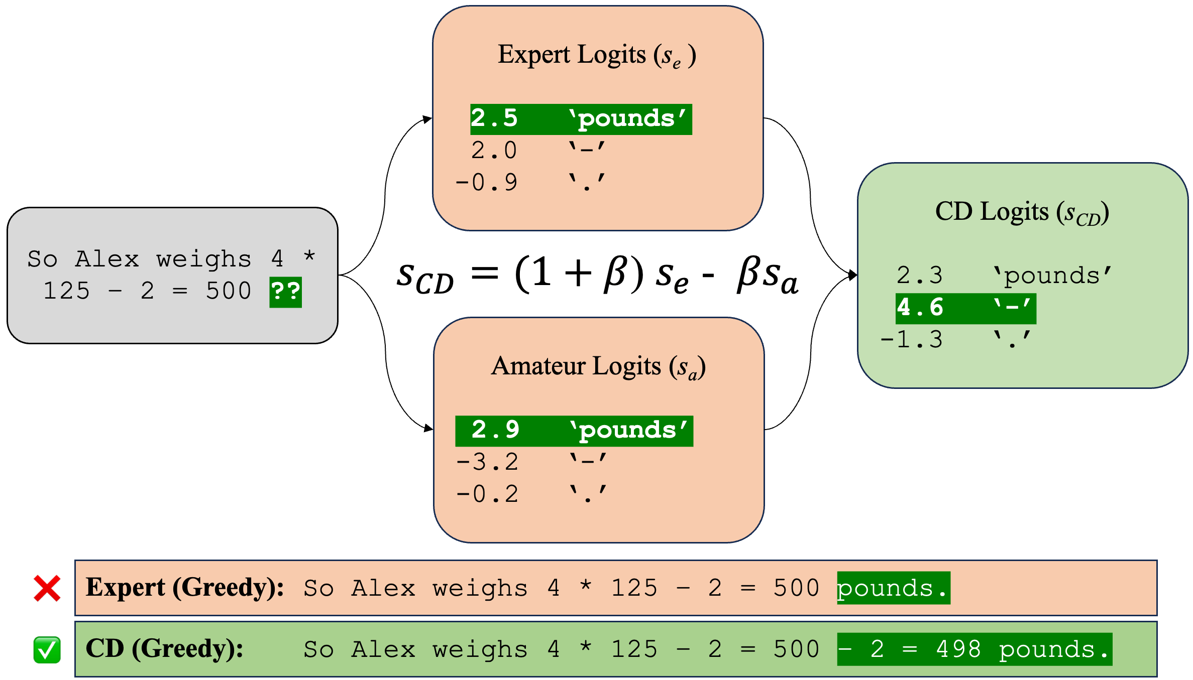 下图展示了对比解码的核心思路: