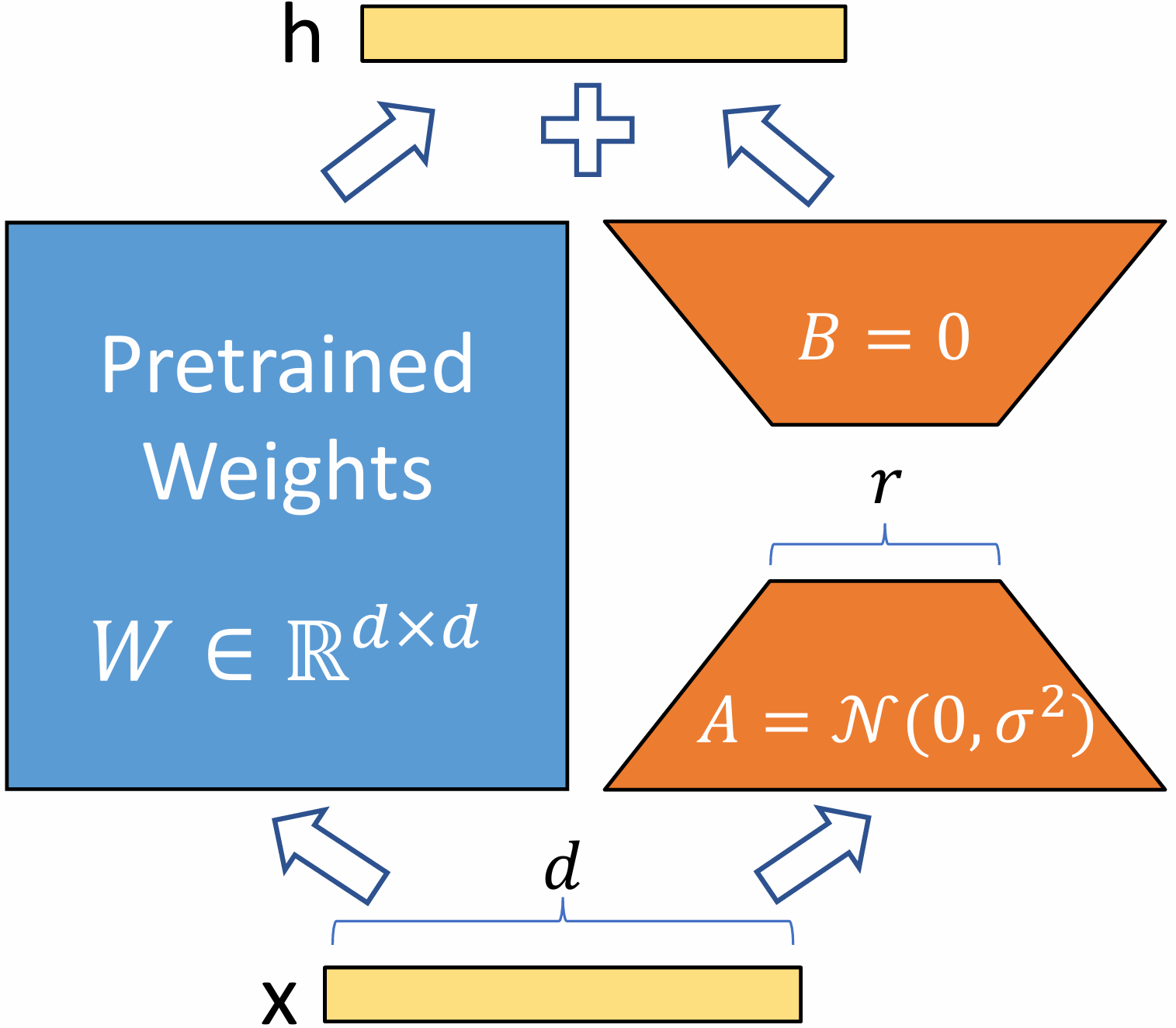 where A∈Rdin×r, B∈Rr×dout and the rank r≪min(din,dout).